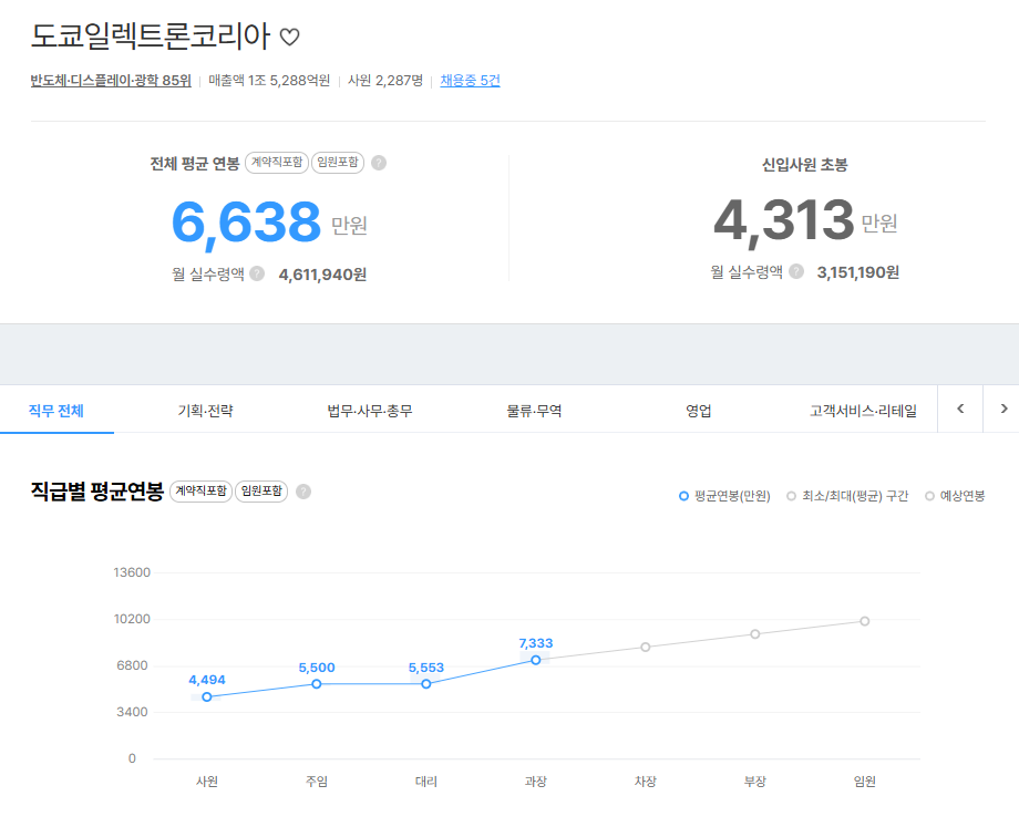 도쿄일렉트론코리아 연봉 수준은 전반적으로 대기업 중상위권에 해당합니다.