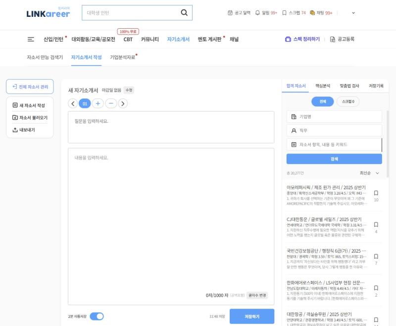이 기능은 특히 자소서 초안을 잡을 때 유용합니다.