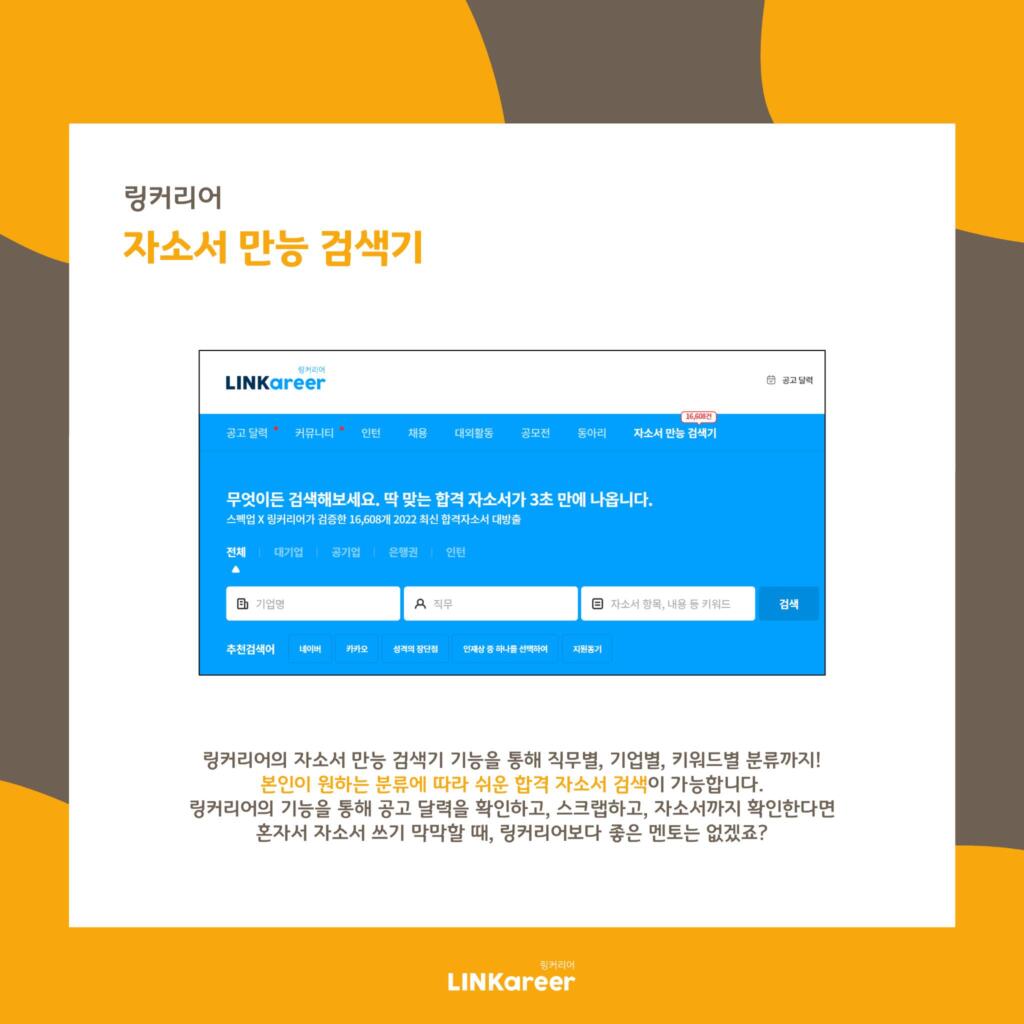 자소서 쓰기가 막막하다면 링커리어 합격자소서를 참고해 보는 건 어떨까요?